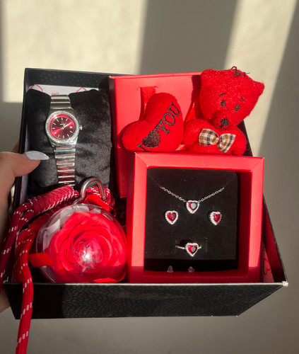 ست قلب قرمز با ساعت فول نگین (محصولات جداگانه قیمت گذاری شدن)