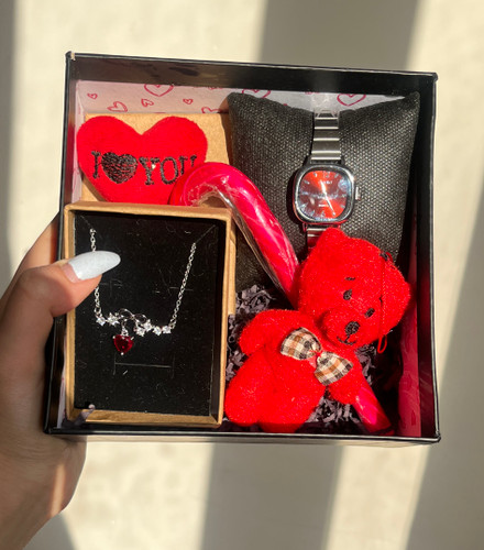 ست قلب قرمز با ساعت فول نگین (محصولات جداگانه قیمت گذاری شدن)