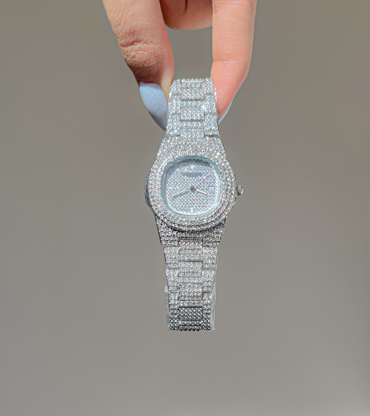 ساعت نیم نگین جذاب دخترانه داخل صفحه هم شاین داره و قابلیت تنظیم بند هم داره