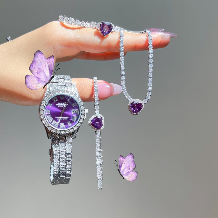 ست ساعت و دستبند و انگشتر و رینگ فول نگین