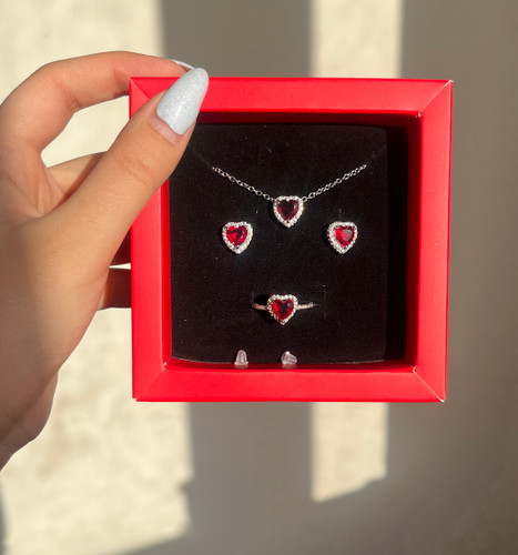 ست قلب قرمز با ساعت فول نگین (محصولات جداگانه قیمت گذاری شدن)